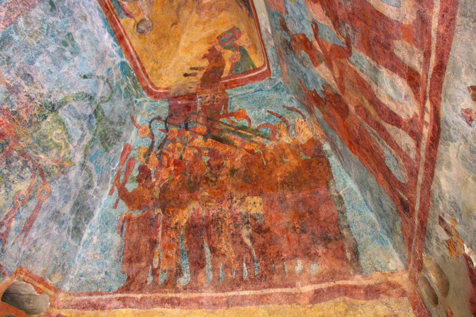 No tinc paraules per descriure l'interior dels tres templets i les imatges pintades amb colors càlids on se descriu la nissaga d'un governador i també la captura d'un guerrer enemic. Músics i guerrers, personatges de llinatge noble i servents, astrònoms i defensors de la ciència Maia. Un altre dia us explicaré els motius que ara es donen a la caiguda de l'imperi.
